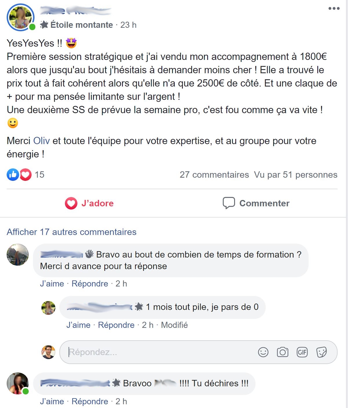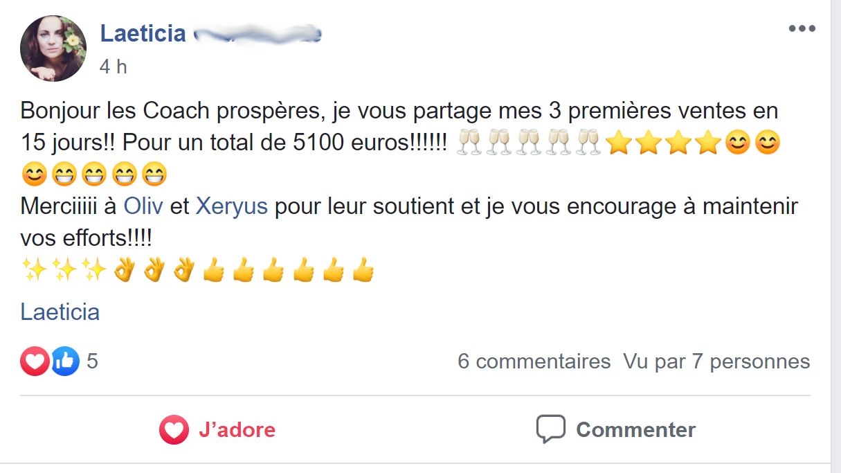 J’ai un Agenda Rempli pour 6 mois et je vends 6 gros coachings par mois. Mon Chiffre d’Affaires a été Multiplié par 4.